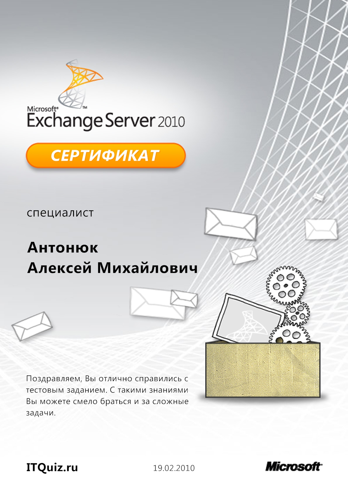 Специалист Exchange Server 2010 (Простой тест)Специалист Exchange Server 2010 (Простой тест)